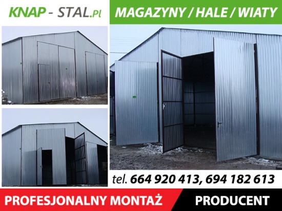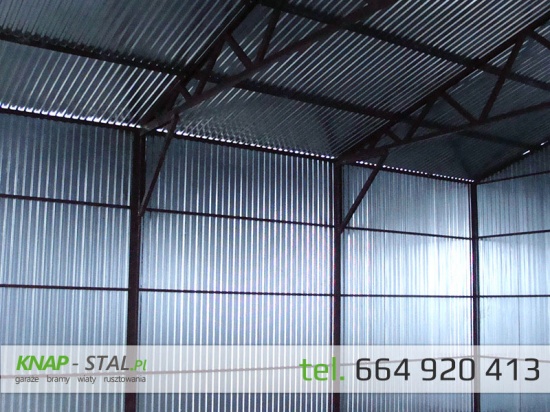 Przedmiotem oferty jest hala/magazyn blaszany o wymiarach 10x10m. Konstrukcja pokryta jest blachą trapezową ocynkowaną. Konstrukcja garażu wykonana z profili zamkniętych