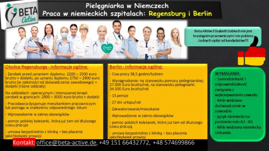 Pielęgniarka w Niemczech - praca w niemieckich szpitalach: Regensburg i Berlin