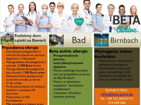 Rodzinny dom opieki ma Bawarii – Bad Birnbach szuka pielęgniarek z urkundą lub jeszcze nie uznanym dyplomem
