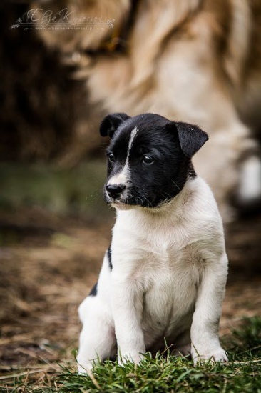 Efi to ślicznie umaszczona, gładkowłosa suczka. Jest jedną z sześciorga dzieci bezdomnej suni. Mała ma w tej chwili ok. 8 tygodni, waży ok. 3-4 kg. Docelowo będzie kilkunastu kilogramowym psiakiem. Jej mama waży ok. 16 kg i sięga kłębem do kolana. Efi jak każdy szczeniak w jej wieku jest radosna, wesoła, w głowie jej psoty i harce. Jest ciekawa świata, odważna. Nie boi się ludzi, spragniona kontaktu z człowiekiem, pieszczocha, ale również mały gryzak - jak to w tym wieku. To kochany i milusi szczeniak, który będzie wymagał konsekwencji i cierpliwości w wychowaniu.