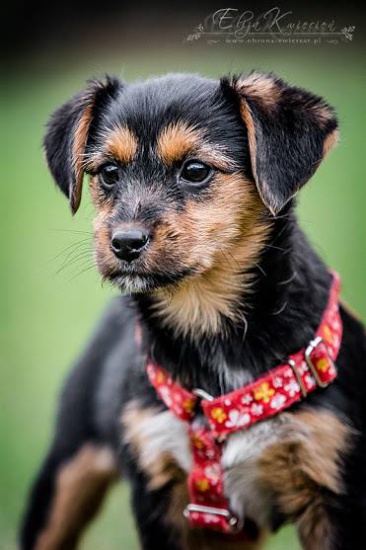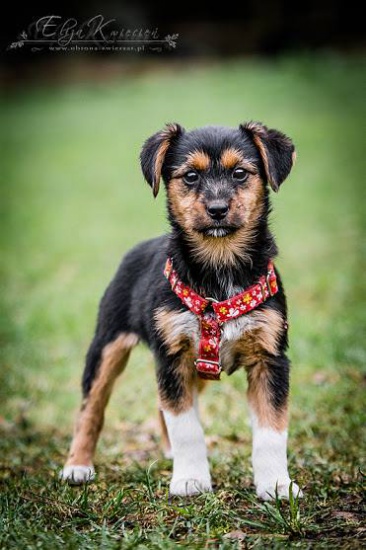 Suczka ma ok. 12 tygodni, waży ok. 5 kg, docelowo pewnie osiągnie wagę 12-15 kg. Piri jest niezwykle proporcjonalna i śliczna. Ma zwartą, sportową sylwetkę. Cudownie umaszczona trikolorka z białymi skarpetkami. Szata z delikatną domieszką szorstkiego włosa. Piri od początku była najodważniejsza z sióstr. Kontaktowa i otwarta, zaczepia do zabawy i widać, ze kontakt z człowiekiem jest dla niej wielką przyjemnością. Ma ogromny potencjał do łobuzowania. Kochana i wesoła, jak każdy szczeniak. Śmiała i pozytywnie nastawiona do świata, wszędobylska i odważna.